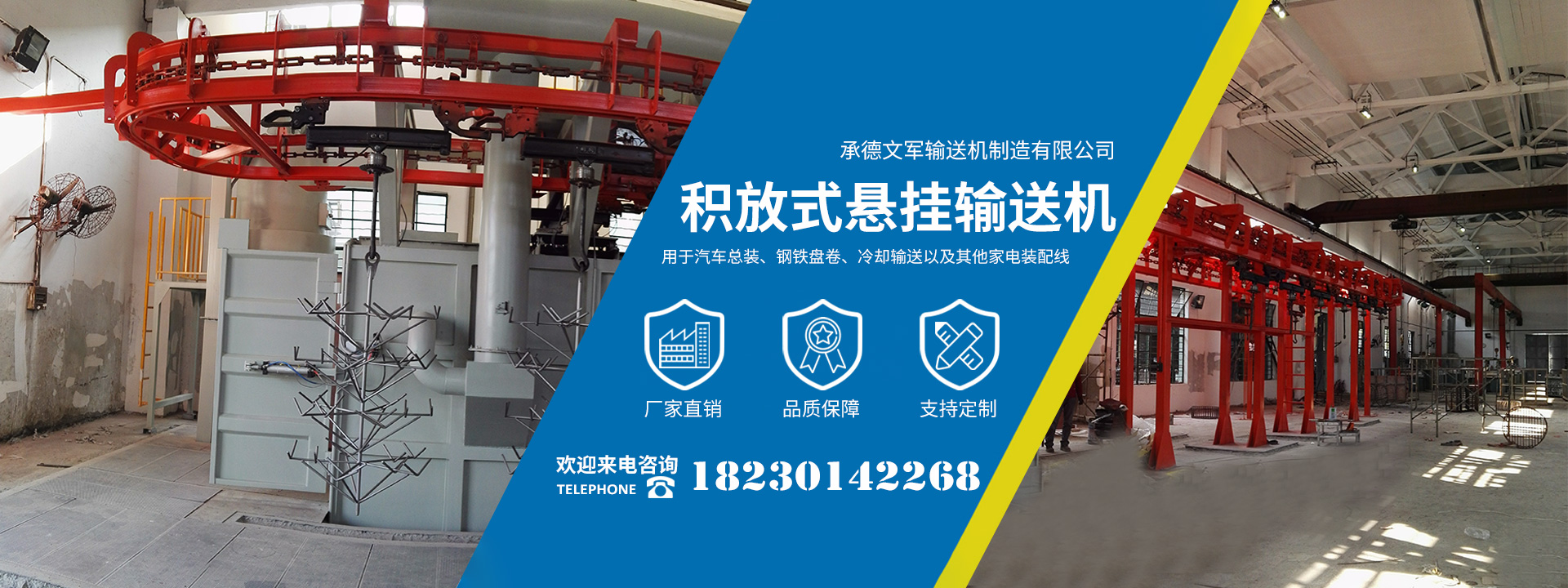 承德文軍輸送機(jī)制造有限公司位于承德縣孟家院鄉(xiāng)工業(yè)園,自2009年起公司專注生產(chǎn)制造各類工廠物流自動(dòng)化設(shè)備,替代了進(jìn)口產(chǎn)品,并成功進(jìn)入了國(guó)外市場(chǎng),再此基礎(chǔ)上公司的AS/RS自動(dòng)化立體倉(cāng)庫(kù)成功用于煙草、發(fā)動(dòng)機(jī)、鑄造型芯、以及其他物流配送中心,公司的積放式懸掛輸送機(jī)廣泛用于汽車總裝、鋼鐵盤卷、冷卻輸送以及其他家電裝配線等。